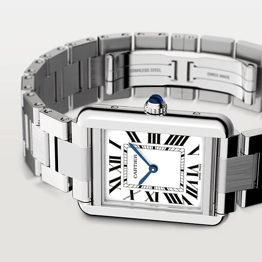 The Tank was first made popular by Louis himself. This icon features a carefully considered design with flat vertical brancards and a sapphire cabochon.